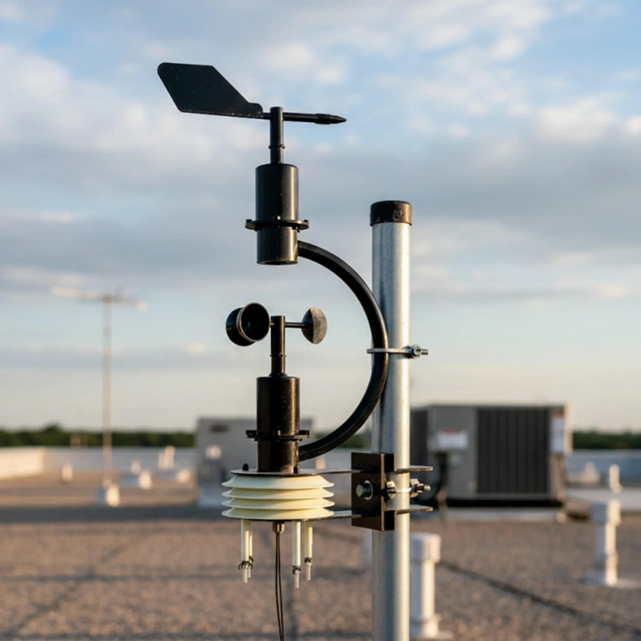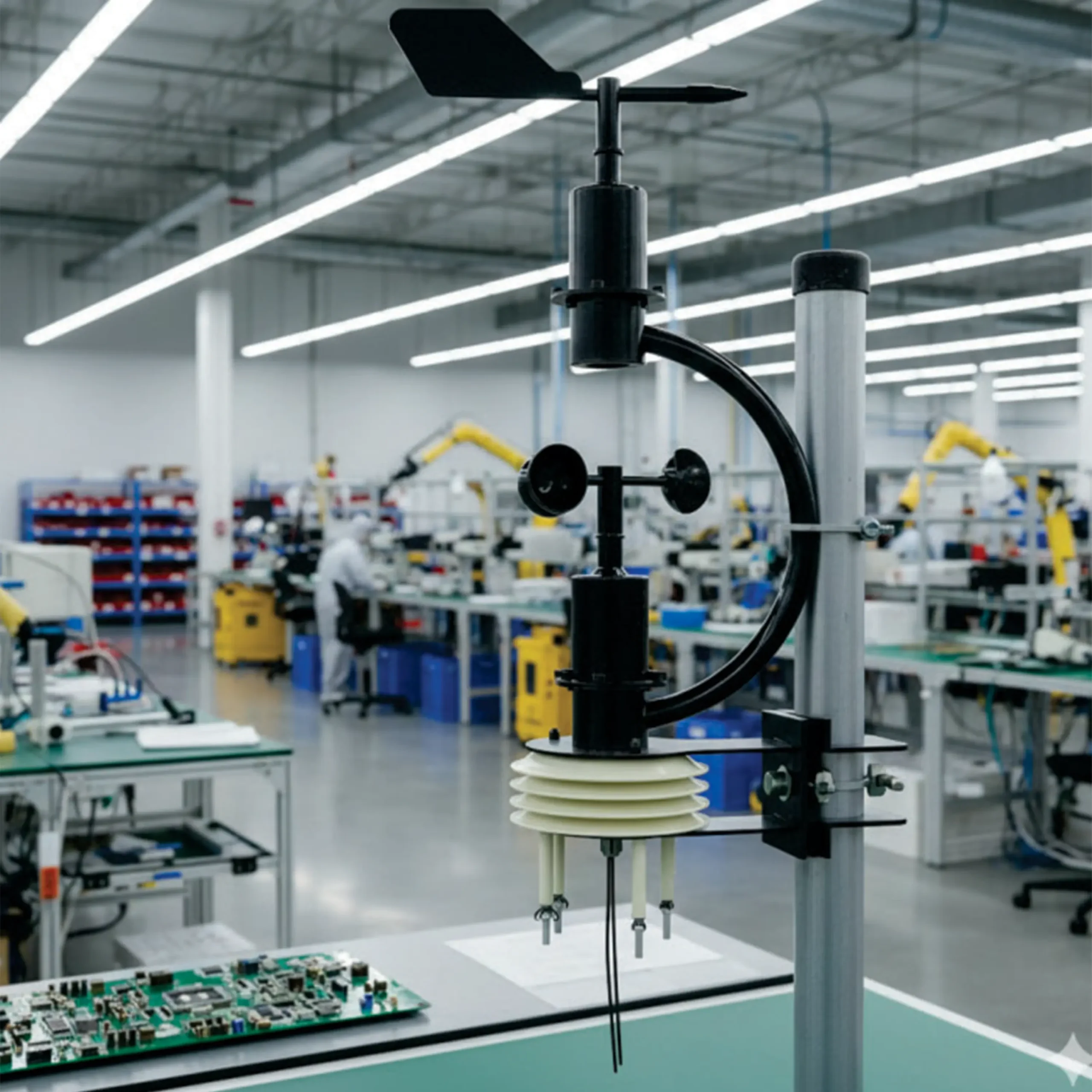 The station measures wind speed, wind direction, ambient temperature, relative humidity, atmospheric pressure, noise levels, and supports optional monitoring of PM2.5/PM10 particulate matter or CO₂, making it suitable for a wide range of environmental and industrial applications. Its industrial RS485 Modbus RTU output ensures seamless integration with SCADA systems, data loggers, and centralized monitoring platforms.